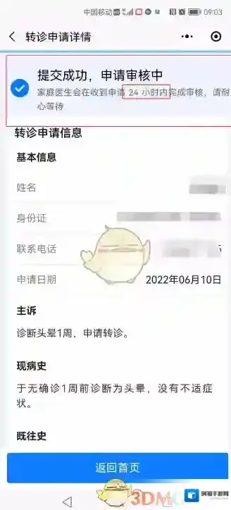 5、按照问题指引,填写既往病史后,点击“确认提交”。提交申请后,耐心等待家庭医生的审核,一般24小时内会完成审核。
