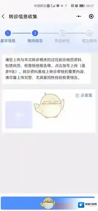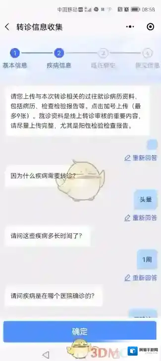 4、上传既往病历资料图片,比如检验检查报告等(可选)。按照问题指引,填写疾病信息。