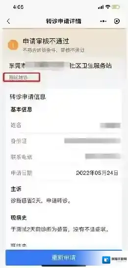 6、收到审核结果,如果结果为“通过的”,就可以在有效期内凭结果页里的电子转诊单,到相应转诊医院就诊。如收到审核结果为“不通过的”,请到相应社区卫生服务中心(站)现场就诊。