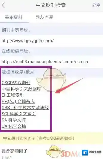 3、打开自己查询的期刊,在里面能够看见期刊的收录情况(即就代表了你查询期刊的级别)。