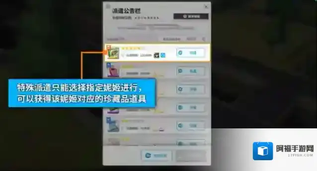 特殊派遣:完成战术学院13-3派遣教学后,解锁额外派遣栏位。特殊派遣只能选择指定角色进行,可获得对应珍藏品道具。