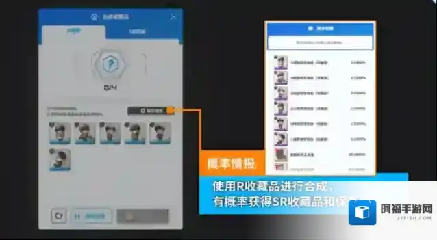 R收藏品合成:使用R收藏品进行合成,有一定几率获得SR收藏品和保养工具。