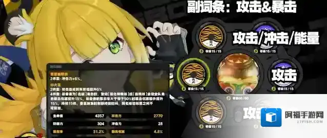 主词条方面,4号位攻击或者暴击(根据自己哪个没达标就补哪个),5号位攻击,6号位冲击或者攻击,副词条就要攻击和暴击