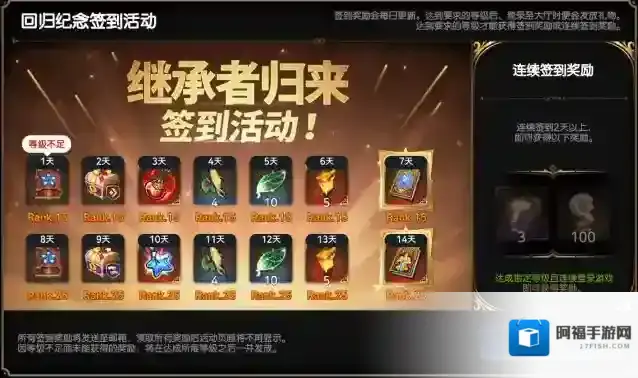 ||继承者归来签到 领取丰厚奖励||