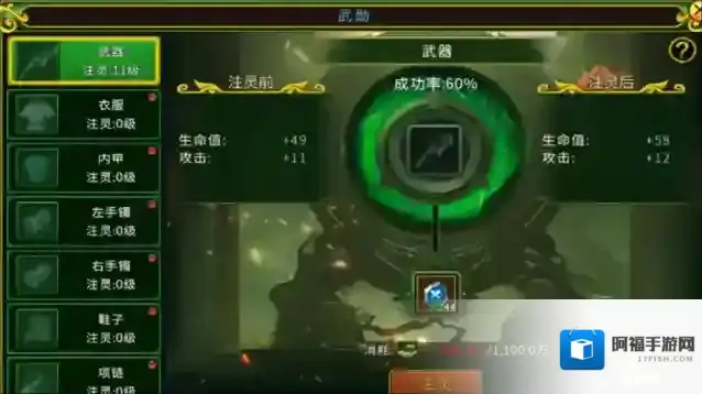 有着神秘力量的石头,可以提升武勋装备的注灵属性,注灵失败不会降级(获取方式:在领地宝库和混沌之海可以获得)注灵之后属性翻倍,相当于多穿了一套加9的装备。