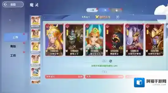首先打开魔灵界面,分为背包和工坊两个选项。背包中主要显示当前已经拥有的魔灵卡牌碎片以及查看完整图片,目前卡牌根据品质分为蓝色卡牌,紫色卡牌,橙色卡牌和红色卡牌,对应品级和宠物完全一样,最高等级为HUR级。只需要收集10枚同名魔灵碎片就能合成一张完整卡牌。
