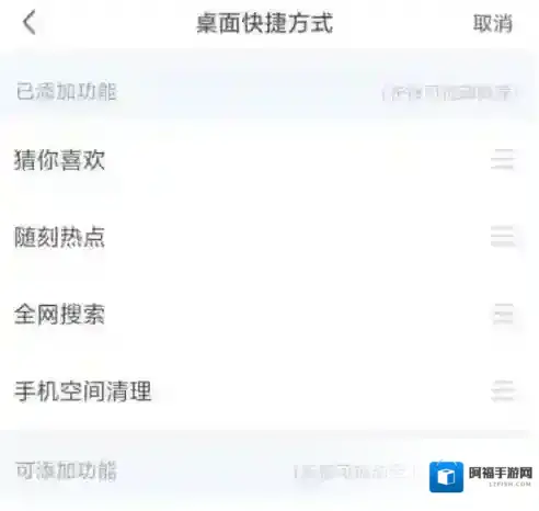 软件默许展现的为猜你喜爱,随刻热门,全网查找,手机空间整理四项,假如需求修正,点击右上角修改按钮进行修改。