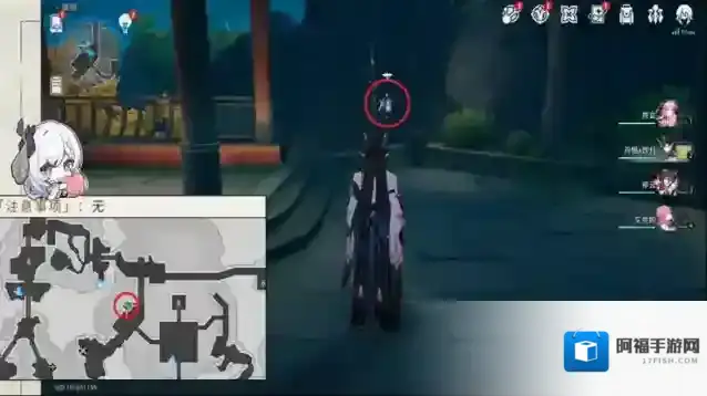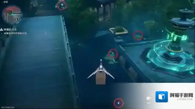 (2)之后顺着楼梯飞下去,假山附近有四个