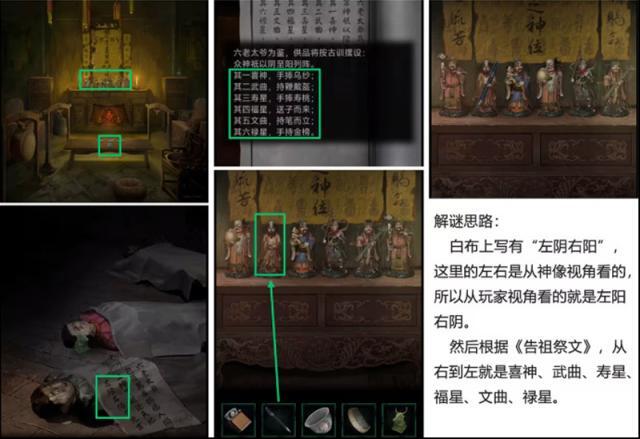 31、拿到猪头雕像和羊头雕像,根据《告祖祭文》的提示,将三个X头雕像放在正确的位置上。
