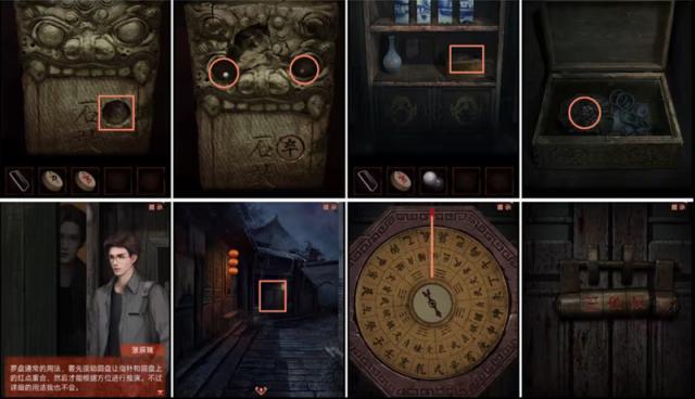 38、把象棋卒嵌在石敢当的凹槽中,拿到黑白棋子,将黑白棋子放在柜子上的黑白鱼盒子上,打开拿到风水罗盘。根据张辰瑞说的使用方式,在门锁前拿出风水罗盘,将指针和红点重合,红线竖下来对应的即为门锁密码。