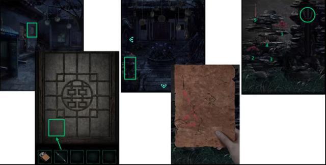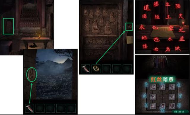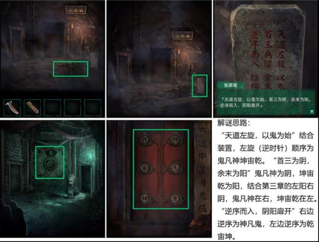 48、根据拼图线索,解开右边拼图机关,拿到咒符,从张辰瑞手里拿到另一张咒符,离开屋子走出院门。