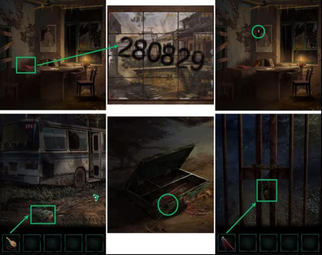 3、长椅上拿到扫把,点击铁门,用扫把拿到公交站停用公告。根据公交站停用公告上的提示,打开密码箱拿到打火机和红圆珠笔。