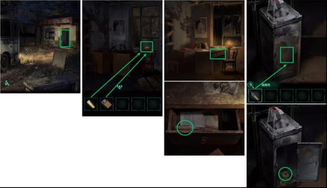 6、进入值班室,将蜡烛放在烛台上,用打火机点燃蜡烛。点击桌子的抽屉,打开抽屉拿到润滑剂,用润滑剂打开钱箱的柜门,拿到纸钱。