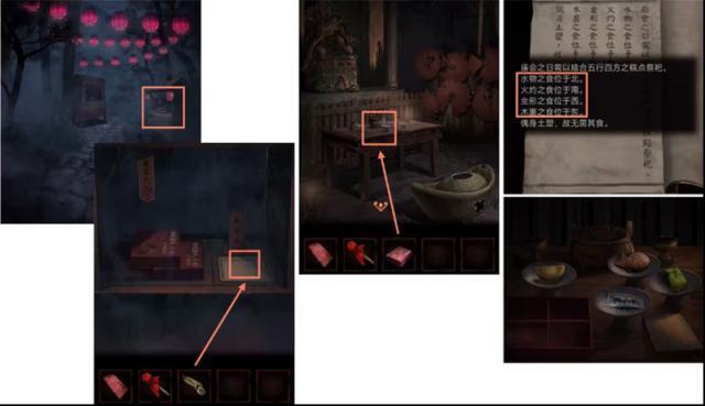 58、张辰瑞:点击石灯,用多功能工具锤爆石灯,拿到凤冠。根据《六转妙法录》,将一对耳环凤冠和金丝嫁衣给纸人穿戴上,点击桌上的笔写下姓名和生辰,再点击桌上的蜡烛点燃纸人。