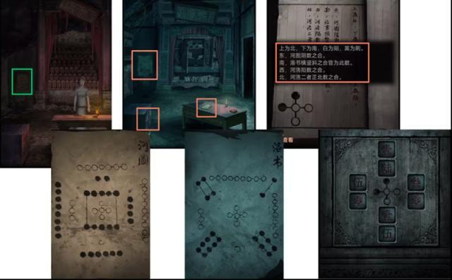 54、张辰瑞:进入百祭轩,点击墙上的河图。崔婉莺:进入千书斋,阅读桌上的《水神煞》,根据《水神煞》、河图和洛书,解开柜子机关。