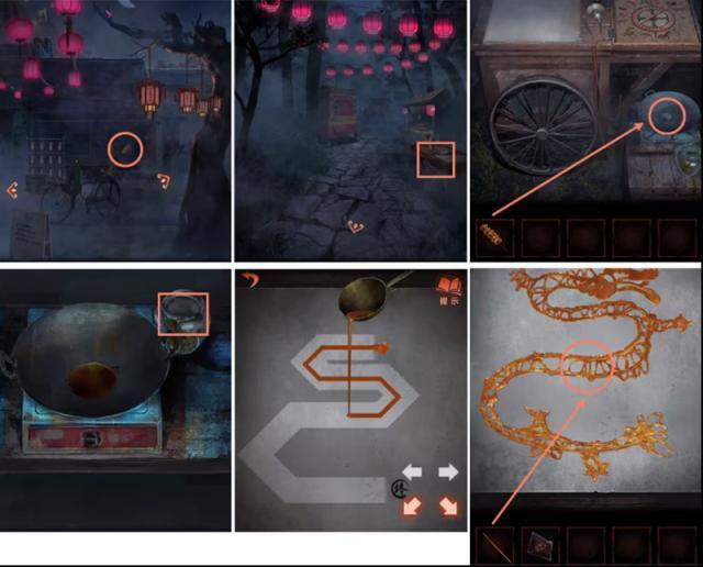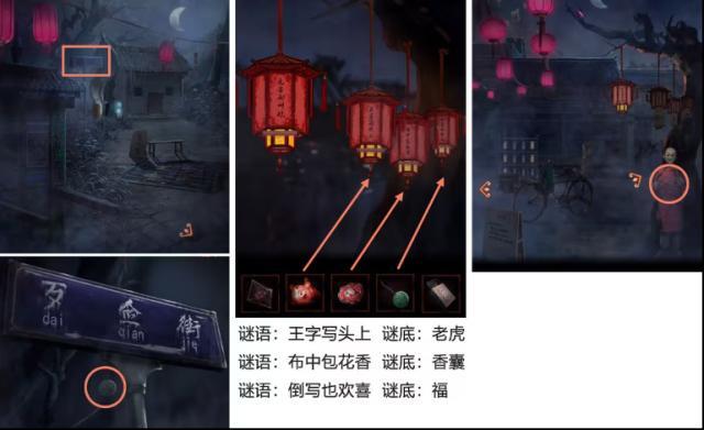 12、点击路牌,拿到福字玉饰,根据灯笼上的谜语,将对应的物件挂在灯笼上(纸人惊现小高能),点击拿到纸人手里的锣棒。