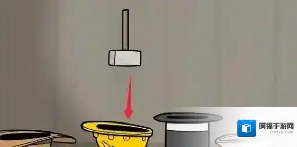 5、把锤子放在左边黄色的安全帽里。