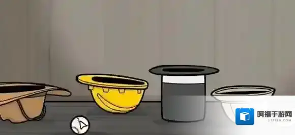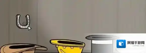 8、马蹄铁放到左边的牛仔帽中。