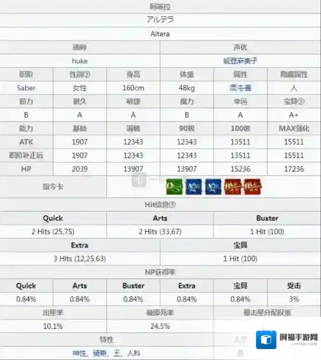 首先,大王的面板的话,攻击力非常突出,做个对比的话,呆毛王100级不加金芙芙的话攻击力还比90级的大王略低一点,如此突出的攻击力白值让大王的宝具伤害和平a的输出能力都很出色。np率的话,和大部分早期从者一样,阿蒂拉的蓝卡还算平庸,但是绿卡性能就很差了,打暴击星和打np的能力不太理想。