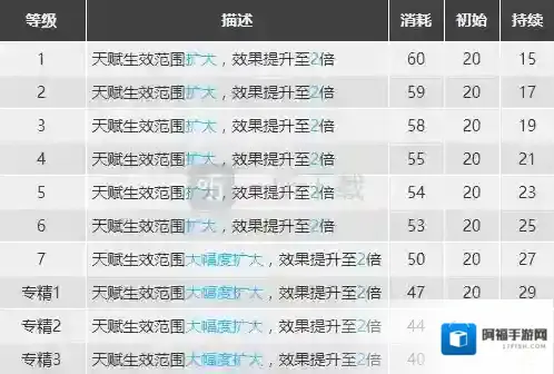 大幅增加了诗怀雅天赋的广度和强度,在升满后高达21格的广域覆盖效果和最好24%的高额加成都证明这个技能很大程度的增加了诗怀雅天赋的效果,并且展现出了优秀的泛用性,在大多数场景都能够有不错的表现。