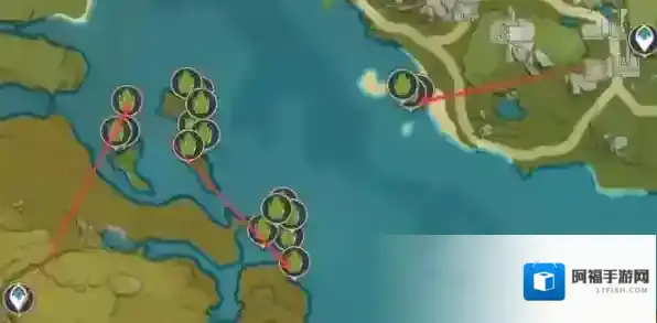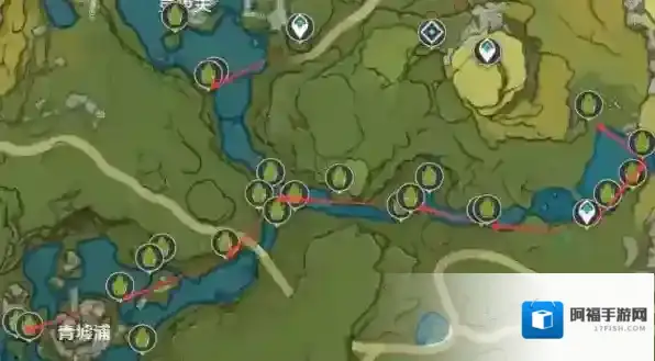 小编整理的原神青蛙获取路线了,青蛙的数量还是比较多的,但是刷新周期有些长是24小时,我们只需要按照图片上的路线搜集过去就好了!