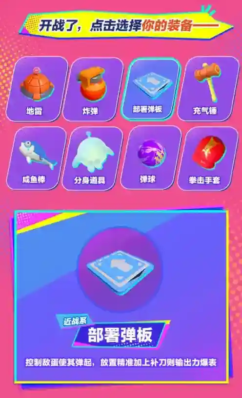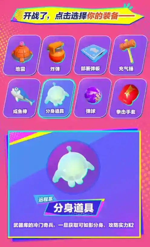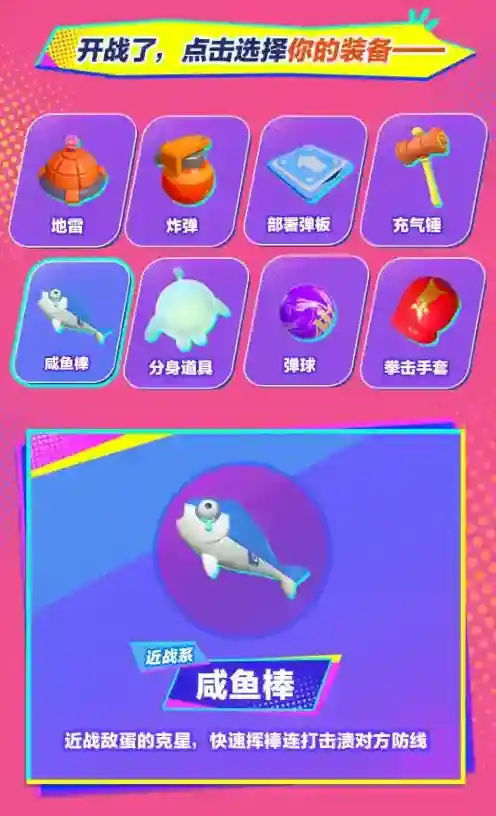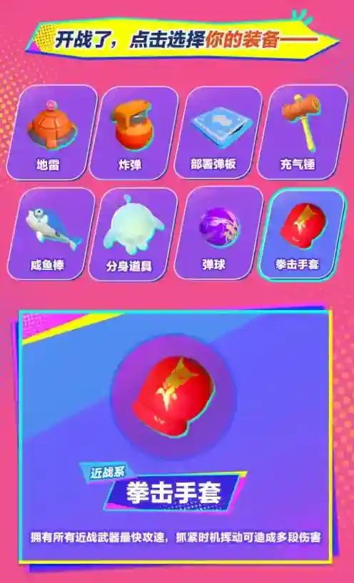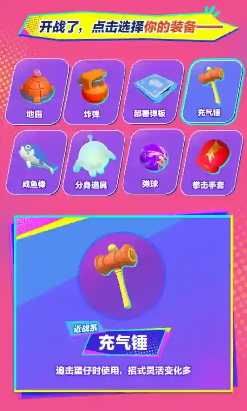 想要获得擂台赛的胜利除了出色的格斗伙伴趁手的武器也是成功的关键!各种奇门道具和形形色色的武器已经备好满足蛋仔们近战远攻、精准输出的需求攻击力upup!