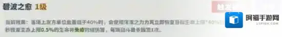 描述:当场上友方单位血量低于40%时,会使用洋流之力为其立即恢复目标生命上限*40%的生命,同时永久获得每秒恢复生命上限0.5%的生命并免疫灼烧伤害,每场战斗最多触发一次。