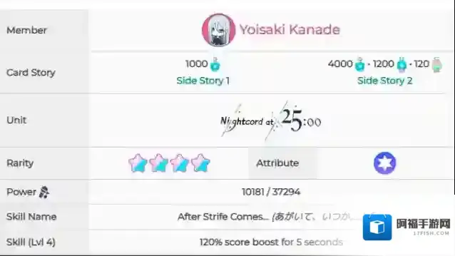 技能:回血500,5秒得分100%10、[栩栩如生]宵崎奏