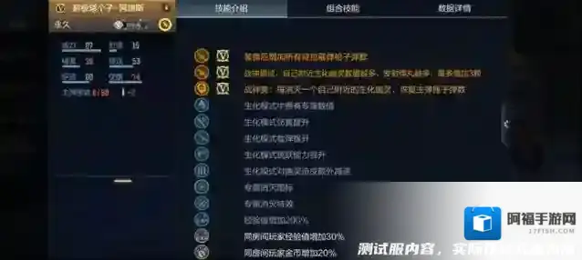 除了生化模式拥有专属数值、伤害提升、载弹提升、跳跃能力提升、对幽灵造成额外减速等服务于生化模式的常规技能外,还有两条特殊技能: