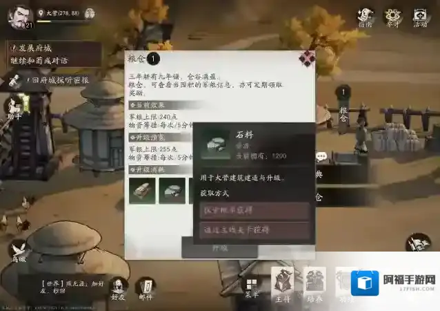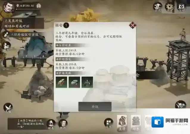 粮仓是非常重要的,粮仓呢可以产出军粮。因为我们不管是刷副本扫荡,还是说去打一些别的副本。都是需要这个体力的,这个军粮呢就相当于是这个体力。我们粮仓等级越高,那我们就是获得的体力越多,也就是这个军粮会获得越多。