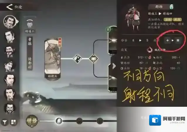 类似于就角色的专精方向。就是不同的仕途方向角色的攻击伤害还有射程范围是不一样的,因为这是一个战旗玩法的游戏,所以说他是有射程的格子。