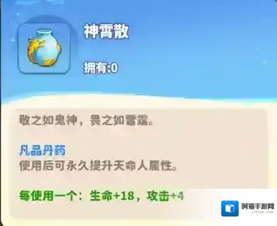 丹药位于洞府玩法中,可以通过服用丹药获得永久属性加成。