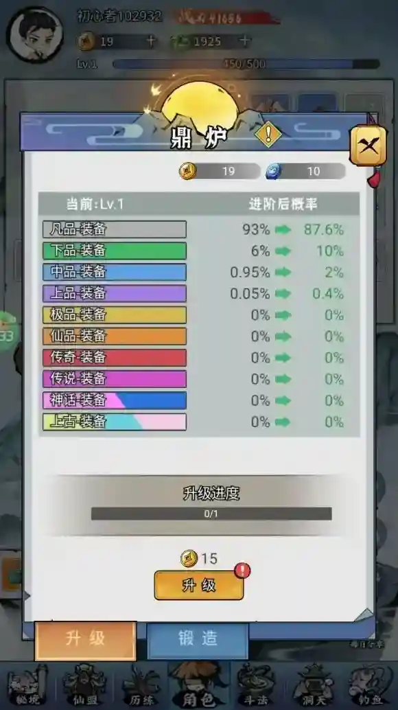 4、点击炉子下方等级,可以将鼎炉升级,提高稀有装备爆率。