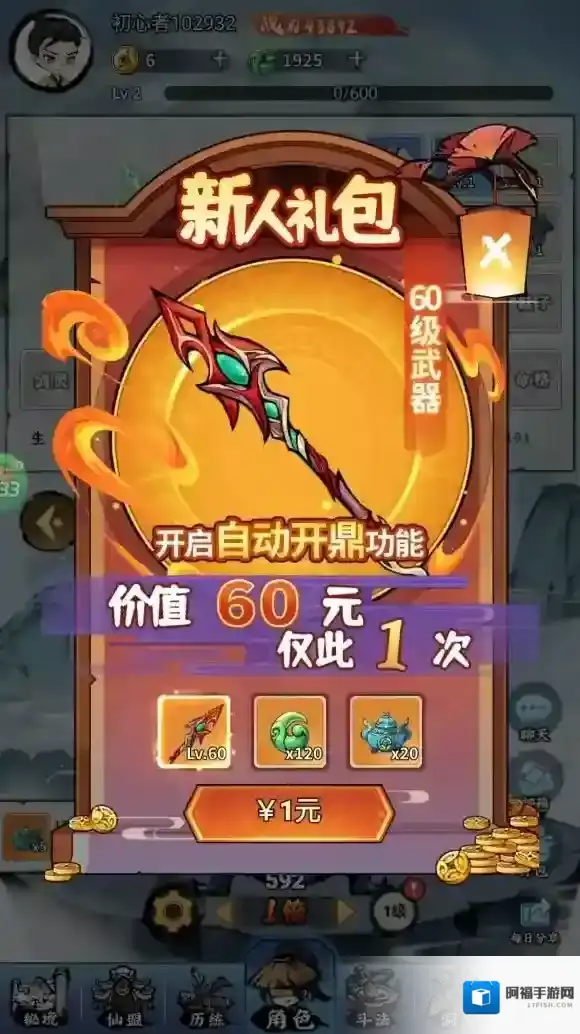 6、有条件的宝子建议购买这个新人礼包,只需1元,对你前期的战力提升很大。