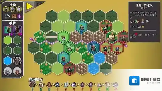 4、正式开始战斗后左侧是玩家可以使用的手牌,你的目标会在右上方显示,每回合可以使用两张卡牌。