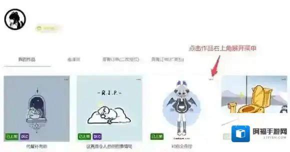 1、在捏咔工坊中,选择想要为其创建DLC的作品,然后点击作品右上角展开的菜单。