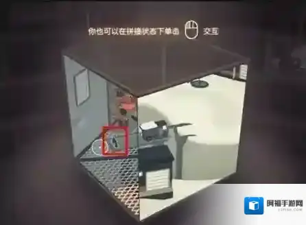 在仓库中,你可以利用桌子上的台灯进行拼接,从而抬起仓库门前地面上的井盖,并打开立方体上部的画面,接着,使用房间中的花篮与木板拼接,使木板落下并露出出水口阀门,这一操作还会打开立方体当前正立面的左侧画面,然后,在左侧立面的滑梯下方就可以找到这张照片,具体照片如下: