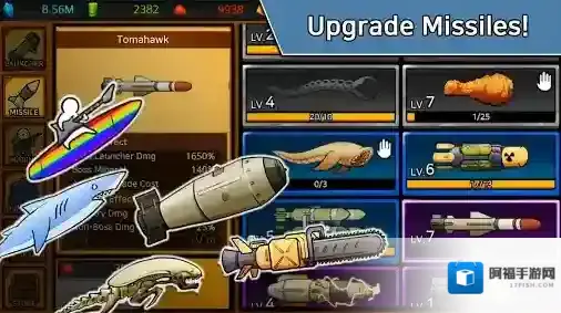 3、每过10关都会有个性的BOSS出现,不断的提升你的发射器和导弹,去消灭更多的BOSS。