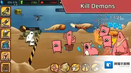 在整个过程中,我们可以通过各种方式来提升自己的实力,例如升级导弹发射器,装备更多强力的导弹,升级导弹提升威力等等,还可以雇佣海洋军队,或者使用水蛭药剂等方式,总之需要你想尽一切办法守卫住警戒线之后的土地,击败一切出现的敌人!