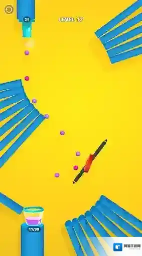 7、例如新的关卡中,需要进行不同的调整,让小球继续掉落到杯中。