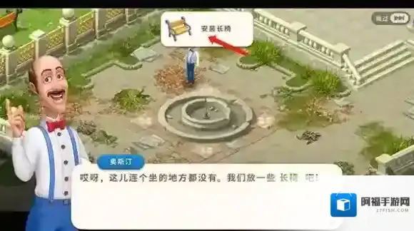 2、出现游戏任务了,我们需要在公园安装长椅,继续点击屏幕。