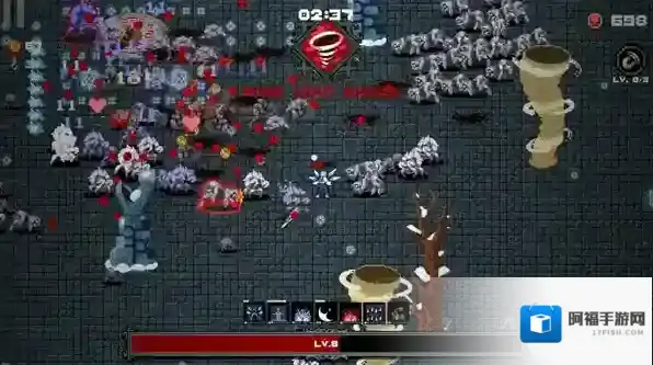 4、消灭恶魔怪物后会掉落红色经验球,拾取后可以提升等级,升级后能选择一个技能强化自己。