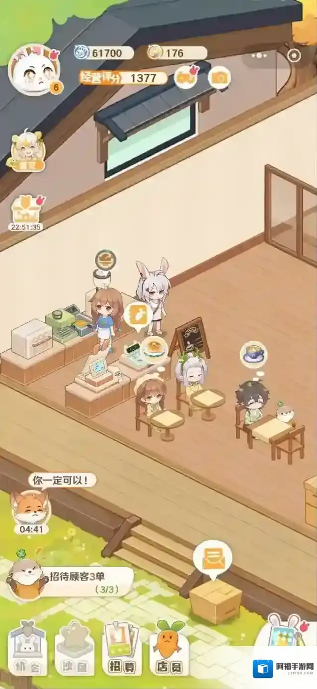 3、顾客享用餐点后,即可获得对应评分与游戏奖励。