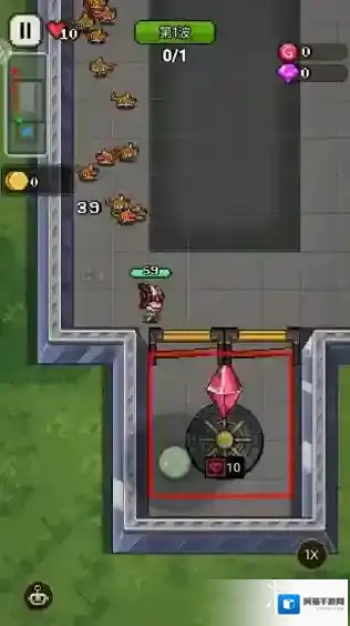 3、在关卡中,需要守卫图示中的宝石。如果宝石被敌人击破,则游戏结束。