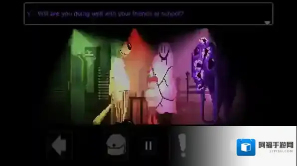 2、正式开始后屏幕下方的左右箭头可以控制角色移动,感叹号是进行互动和推进剧情。