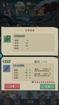 3、获得更好的装备之后,可以穿戴上并出售低价装备。