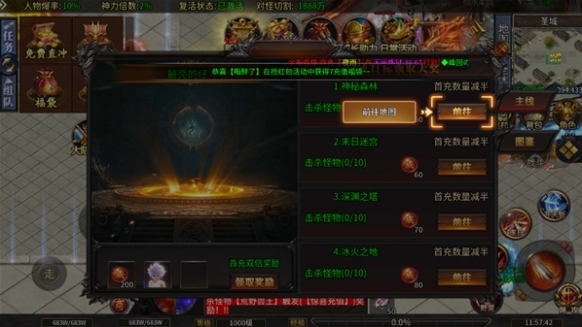 ★福利①:全场永久充值0.1折,充值比例1:100(元宝);