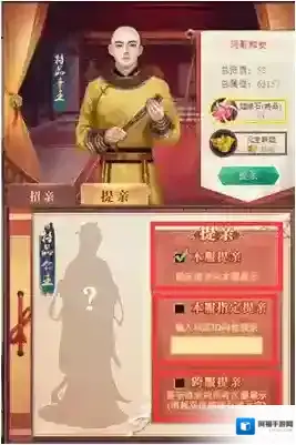 在龙凤厅公开发布提亲信息,等待同一服区的其他圣上看到提亲信息后,选择与圣上联姻,这种方式会失去主动挑选的权利,品级高的子女不建议采用这种方法。