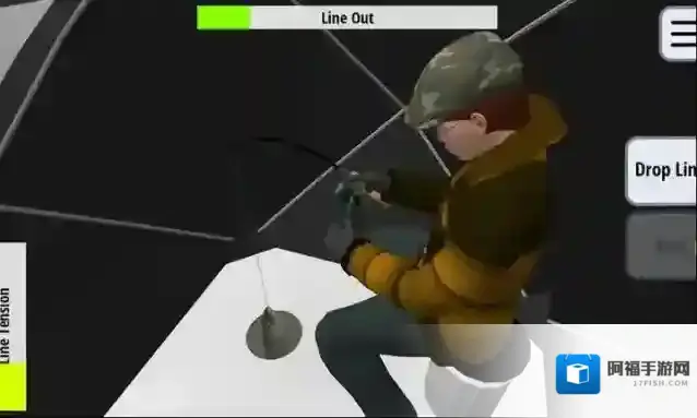 5、正式开始后点击右侧的drop line按钮来放下钓鱼线,等鱼上钩后点击reel就可以把鱼钓上来。