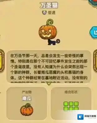 万圣猫:长着南瓜恶魔的头和黑猫的身体,经常在墓地附近出没。